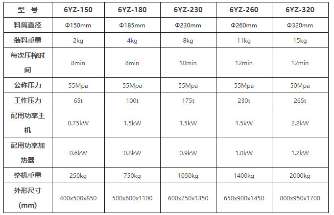 液壓榨油機(jī)的技術(shù)參數(shù):